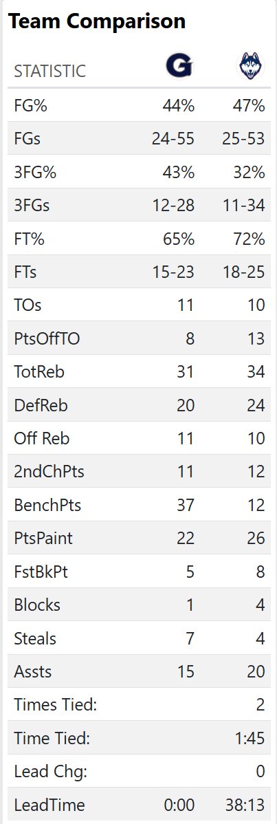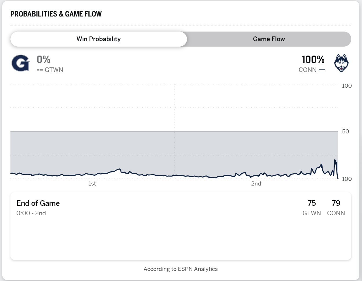 The Huskies never trailed, but it sure got dicey down the stretch. Some credit goes to the Hoyas making challenging shots, but a lot of it goes to UConn failing to put the game away when they could.