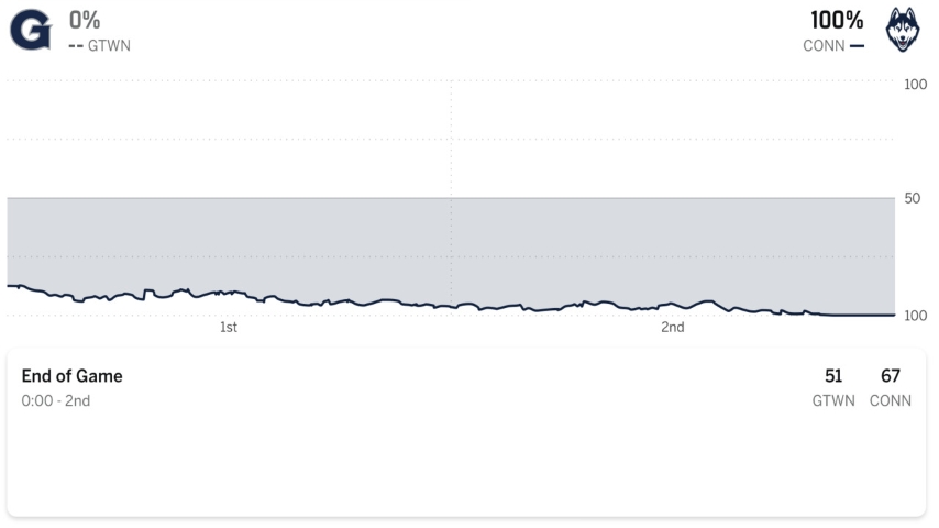 Georgetown went for a 10-6 stretch from that Mullins three up until the under-12 media timeout, but Alex Karaban answered right out of the break with a three to put the Huskies back up 16-10.